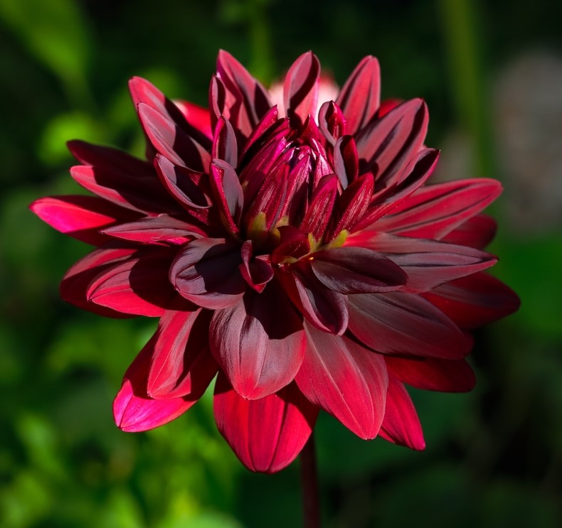 Dahlia After Dusk. Decorative Type. Summer and autumn flowering perennial. Flower Size measures 14 cm across, height 100 cm. Large, fully double, dark burgundy-red decorative flowers featuring slightly incurved petals bloom on long dark stems. The flowers are ideal for both cut flower arrangements and enhancing your garden. Perfect for the herbaceous border or in a bed of their own.