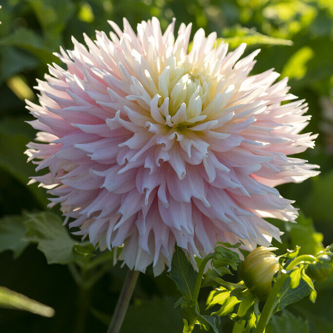 Dahlia Just Married.  FimbriataType.  Summer and autumn flowering perennial.  This beautiful fimbriata Dahlia features delicately fringed petal edges, with a lovely color range moving from rose to white with a creamy center. The bloom size is 12 cm across, growing to a height of 90 cm. Perfect for adding some elegance to your garden.
