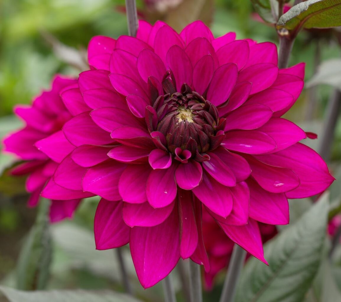 Dahlia Purple Flame (PBR), Decorative Type. Summer and autumn flowering perennial. Flower Size measures 10 -15 cm across. Has good strong purple flowers that are good for cutting. Perfect for the herbaceous border or in a bed of their own.
